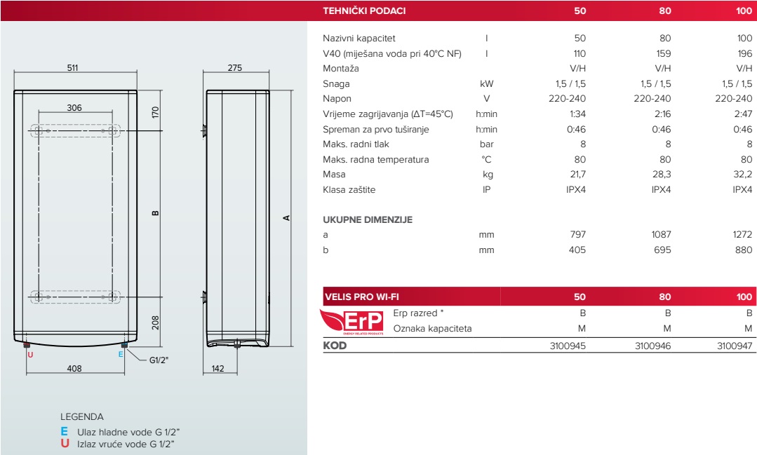 Velis je moderan i tanak bojler koji izgleda elegantno iz svakog kuta.