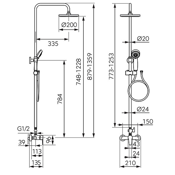 G1/2 ekscentrični razmak priključaka 150 ± 20 mm